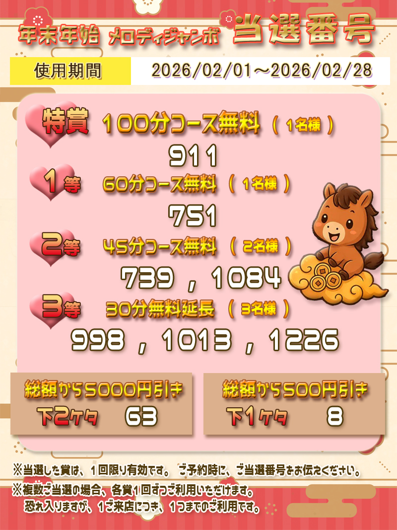 使用期間中のご予約時に、ご当選番号をお伝えください!