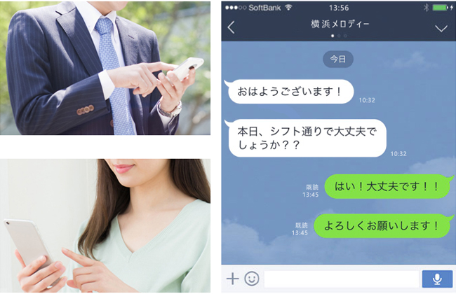 出勤時間の2時間前までにお店に出勤確認の連絡を返信します。 LINEやメールでも大丈夫です。